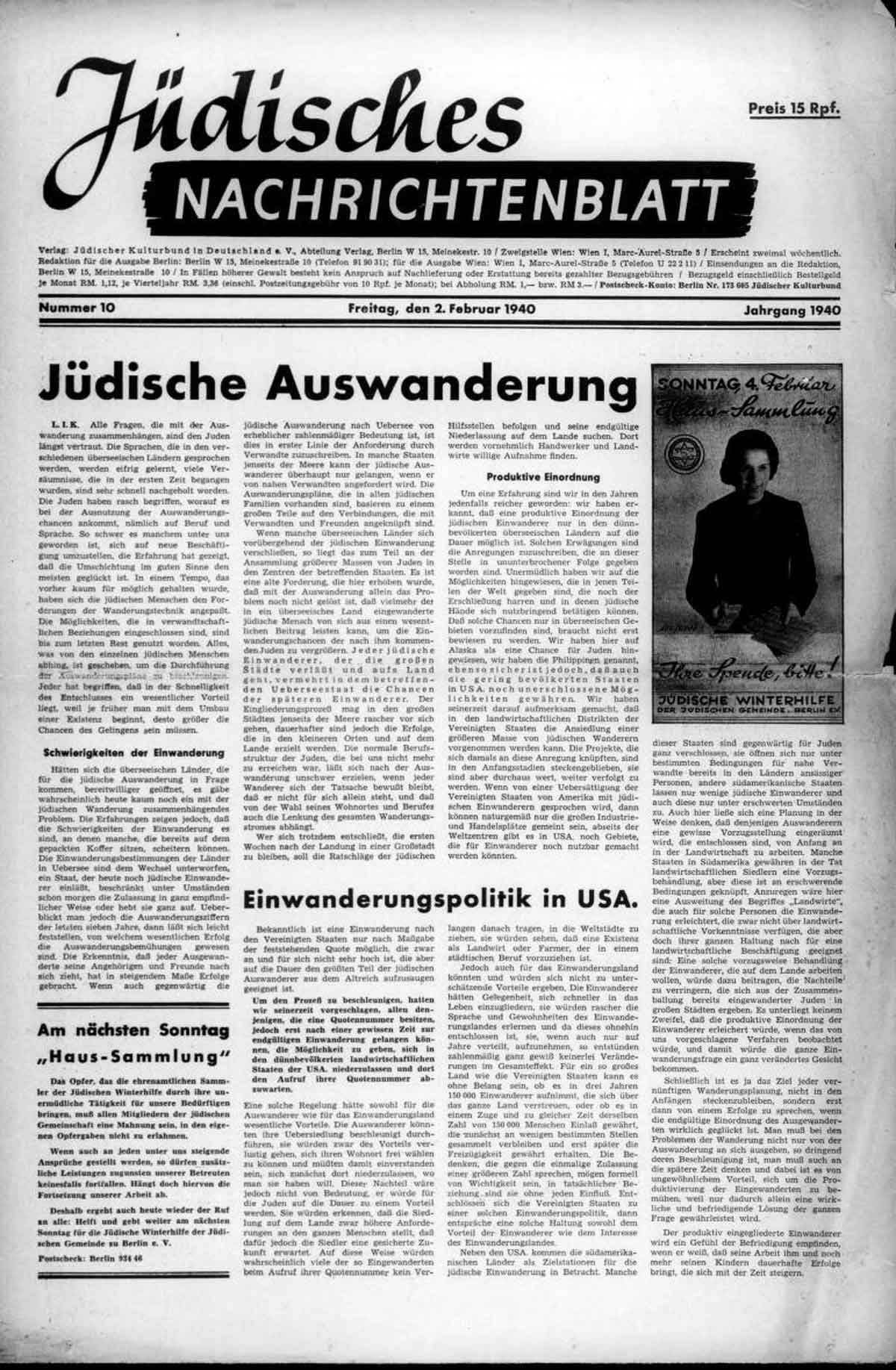 Der wurde weiterhin genutzt, um massiv gegen die jüdische Bevölkerung vorzugehen. In einer großen Aktion wurden vom 12. bis 15. Februar erstmals Juden aus dem Reichsgebiet ins „Generalgouvernement“ deportiert. Betroffen hiervon waren 6.000 Menschen aus Schneidemühl, Stettin, Stralsund, Mährisch-Ostrau und Wien, die in den zum „Judenreservat“ bestimmten Bezirk Lublin zwangsumgesiedelt wurden.
