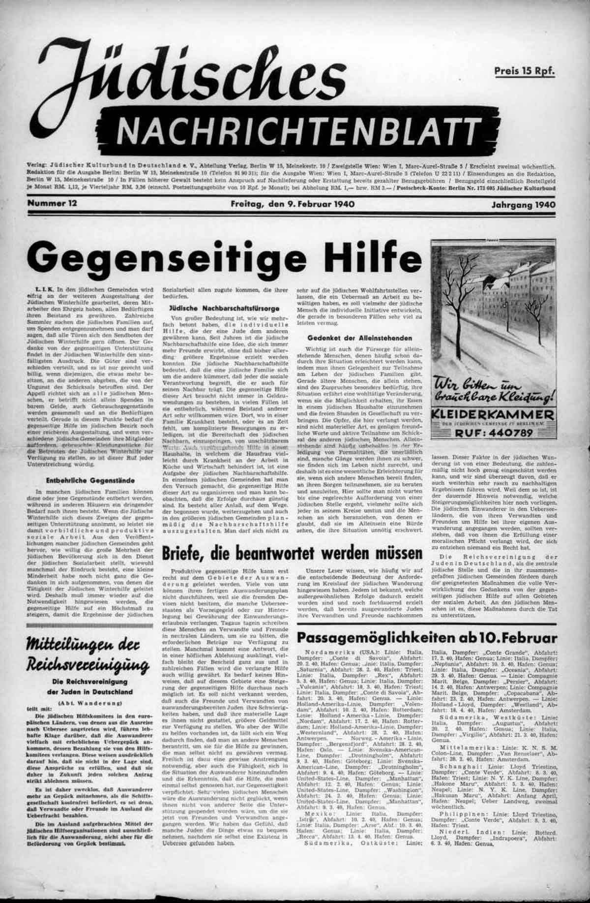 Am 13. Februar fuhr der gesamten im Reichsgebiet lebenden jüdischen Bevölkerung ein heftiger und sicherlich nachhaltig wirkender Schreck in die Glieder. An diesem Tag wurden mehr als 1.100 Jüdinnen und Juden aus Stettin und Schneidemühl ins polnische Lublin verschickt, was zugleich die erste Massendeportation aus dem „Altreich“ darstellte. Offiziell sollte die Aktion dazu dienen, Wohnraum für Baltendeutsche „mit seegebundenen Berufen“ freizumachen, inoffiziell stellte sie - lange vor dem Einsetzen der systematischen Deportationen im Herbst 1941 - nicht anderes dar, als den Auftakt zur „Endlösung der Judenfrage“ im Reichsgebiet. Aufgrund heftiger Proteste und anschließender Verhandlungen der Reichsvereinigung mit dem Reichssicherheitshauptamt durften zumindest einige der ursprünglich zur Vertreibung vorgesehenen vor Ort bleiben - in erster Linie Kinder und Jugendliche, die sich früheren Hachschara -Zentren ohnehin auf ihre Emigration nach Palästina vorbereiteten. Mit dieser Aktion war und blieb die Stettiner Synagogengemeinde ausgelöscht. Zugleich war an nur einem Tag praktisch jede Existenzmöglichkeit von Juden in Vorpommern zunichtegemacht worden.
