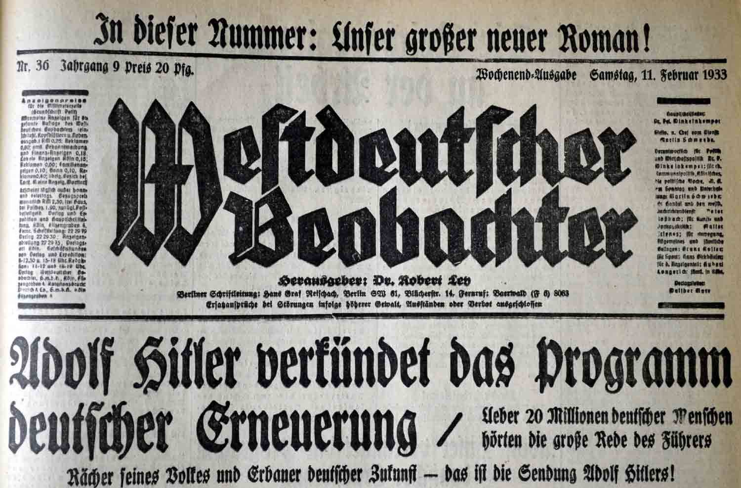 Auf Wunsch Hitlers unterzeichnete Reichspräsident Paul von Hindenburg am 1. Februar die Auflösungsverfügung für den Reichstag. In Hitlers – erstmals vom Rundfunk übertragener – Regierungserklärung hieß es hierzu, dass „14 Jahre Marxismus“ das Land „ruiniert“ hätten. Zugleich kündigte er – sicherlich nicht ohne öffentliche Wirkung – zwei große Vierjahrespläne zur „Rettung des deutschen Bauern“ und zur „Rettung des deutschen Arbeiters“ an. Auch die außenpolitischen Ziele dürften auf erhebliche Resonanz gestoßen sein, proklamierte Hitler doch die „Wahrung der Lebensrechte“ und die „Wiedererringung der Freiheit“ Deutschlands.