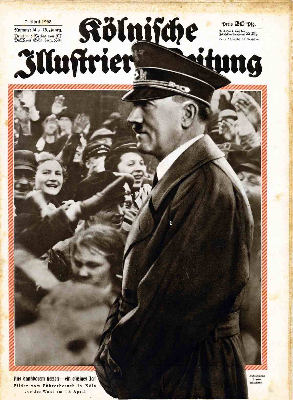 Bei der Abstimmung über den „Anschluss“ Österreichs an das Deutsche Reich votierten im Reichsgebiet nach offiziellen Angaben bei einer Beteiligung von 99,59 Prozent 99,01 Prozent der Wahlberechtigten mit „Ja“; in Österreich bei 99,71 Prozent Wahlbeteiligung sogar 99,73 Prozent. Die Presse kommentiert den Ausgang der „Wahl“ als „überwältigendes Treuebekenntnis“ für Hitler.