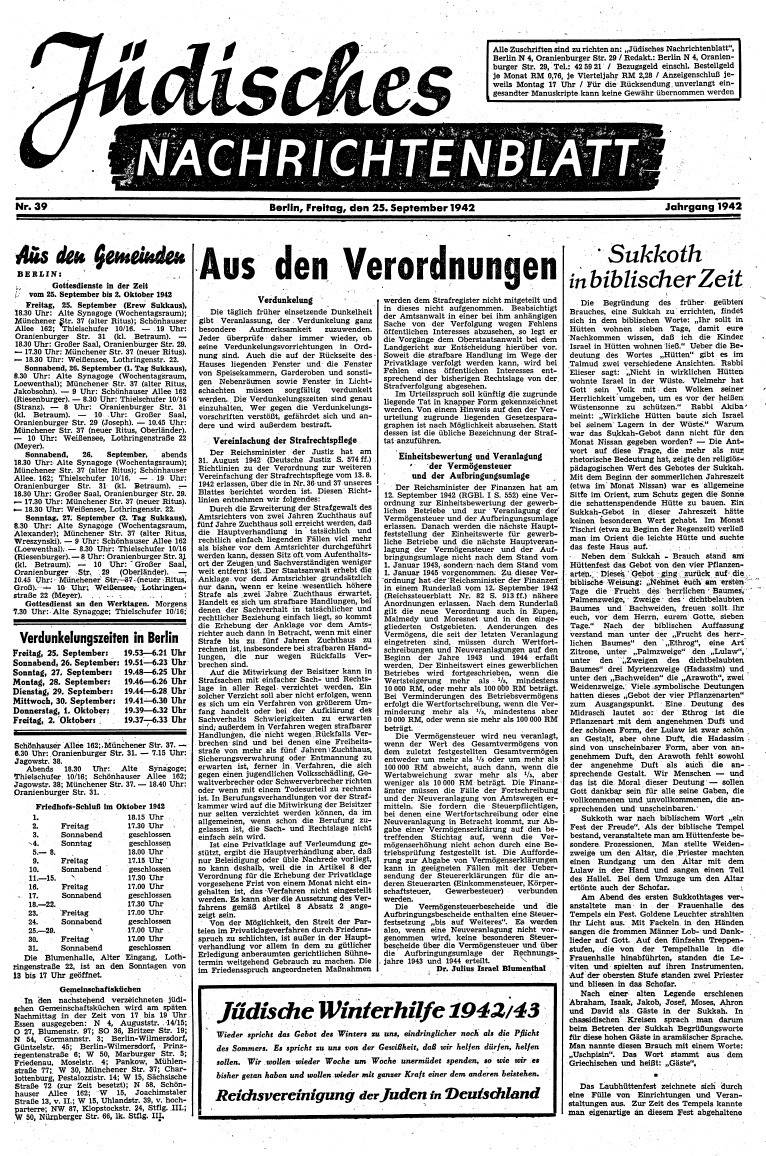 Am 18. September wurde das Nahrungsmittelangebot für die jüdische Bevölkerung erneut stark eingeschränkt, als ein Erlass des Reichsernährungsministeriums außer der Abgabe von Fleisch und allen Weizenprodukten nun auch den Verkauf von Milch und Eiern untersagte zu sie zugleich von sämtlichen Sonderzuteilungen ausschloss. Kleiderkarten erhielten Jüdinnen und Juden bereits seit Kriegsbeginn nicht mehr; Schuhe konnten sie nun nicht einmal mehr reparieren lassen.