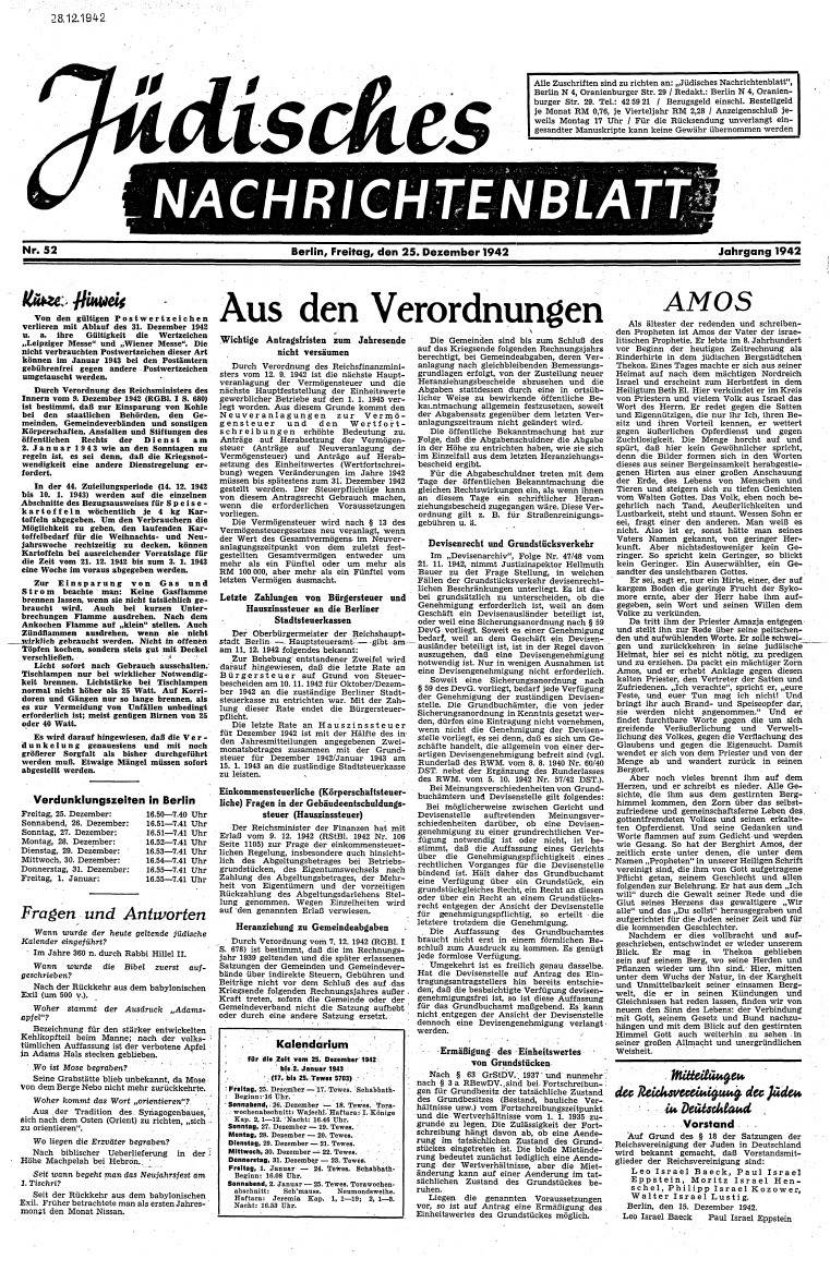 Zu Weihnachten nahm man schließlich sogar den Toten ihre Ruhe. Am 24. Dezember wurde die Reichsvereinigung auf Anweisung des Reichskommissars für Altmaterialverwaltung zu einem Runderlass gezwungen, nachdem alles Metall von jüdischen Friedhöfen - „einschließlich Grabstätten, Zäunen und Toren“ - zu entfernen und dem Deutschen Reich „zuzuführen“ war.