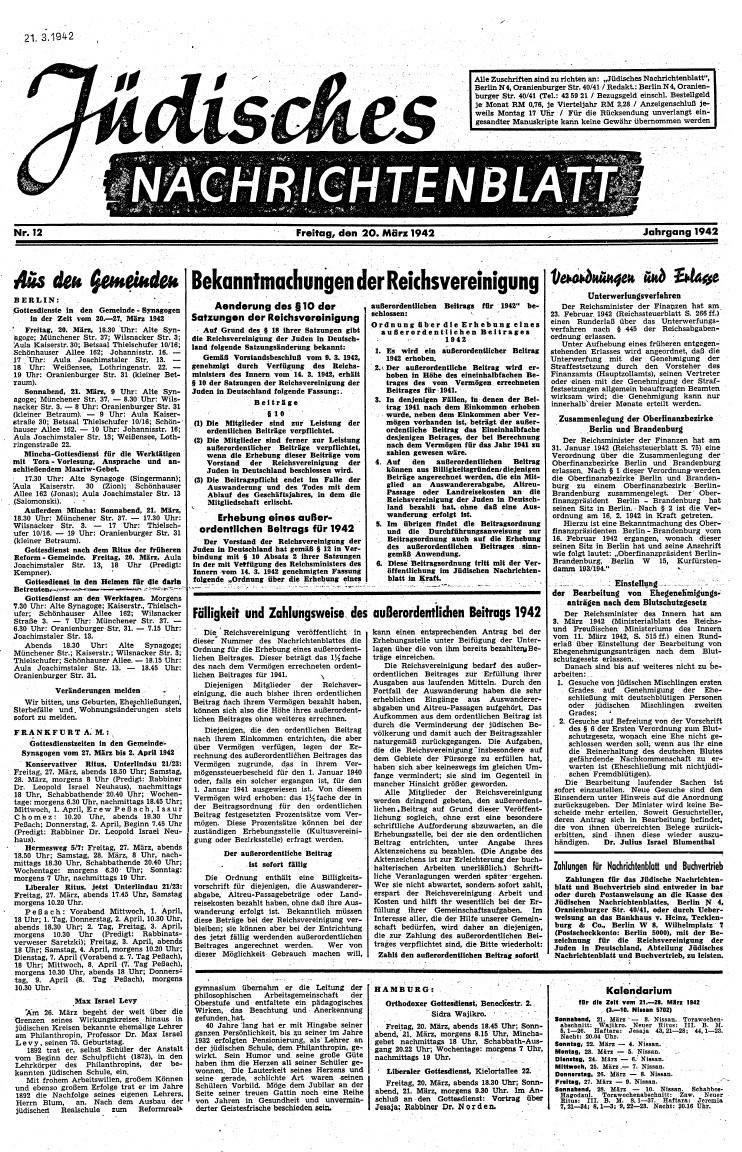 Die Ermordung der jüdischen Bevölkerung Europas wurde im März mit zunehmender Intensität weiter vorangetrieben. Am 6. März kündigte Adolf Eichmann die nächsten Deportationen von rund 55.000 Juden aus dem Reichsgebiet und dem „Protektorat“ zum „Arbeitseinsatz“ in den Osten an. Zugleich wurde den Staatspolizeileitstellen angekündigt, dass sie die ihnen unbequemen älteren Jüdinnen und Juden schon bald „loswerden“ könnten. Dieser Personenkreis werde, um so nach außen das Gesicht zu wahren, ins „Altersgetto“ nach Theresienstadt deportiert.