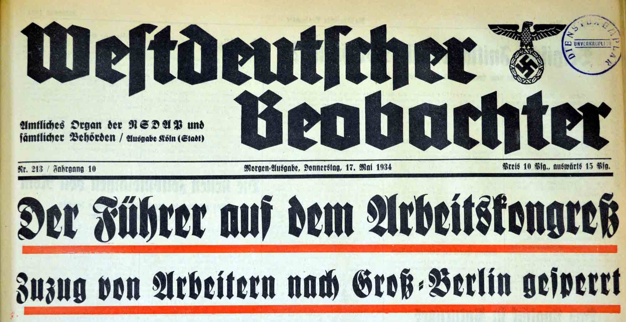 Der Mai begann mit den Feiern zum „Feiertag der nationalen Arbeit“, die zu einer gigantischen Propagandaschau wurden. Allein am zentralen Staatsakt auf dem Tempelhofer Feld in Berlin nahmen rund 2 Millionen Menschen teil. Hitler sprach zu diesem Anlass über eine Stunde über den Kampf gegen die Arbeitslosigkeit und die Überwindung der Klassengegensätze und ging hierbei nochmals auf die Ereignisse vom 2. Mai 1933 ein: „Wenn wir am 2. Mai im vergangenen Jahr die Vernichtung des deutschen Parteiwesens durch die Besetzung der Gewerkschaften einleiteten, dann geschah es nicht, um irgendwelchen Deutschen zweckmäßige Vertretungen zu nehmen, sondern um das deutsche Volk zu befreien von jenen Organisationen, deren größter Schaden es war, dass sie Schäden pflegen mussten, um die Notwendigkeit ihrer eigenen Existenz zu begründen. Wir haben damit das deutsche Volk von unendlich viel innerem Streit und Hader erlöst, der niemandem nutzte.“