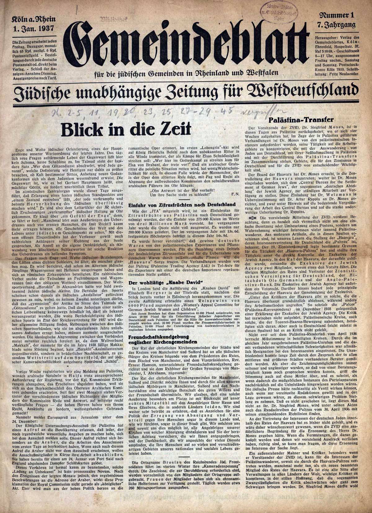 Zum 1. Januar musste die „Jüdische Arbeitslosenvermittlung“ ihre Tätigkeit als Folge der Anordnung der Reichsanstalt für Arbeitsvermittlung und Arbeitslosenversicherung vom 3. September 1936 einstellen.