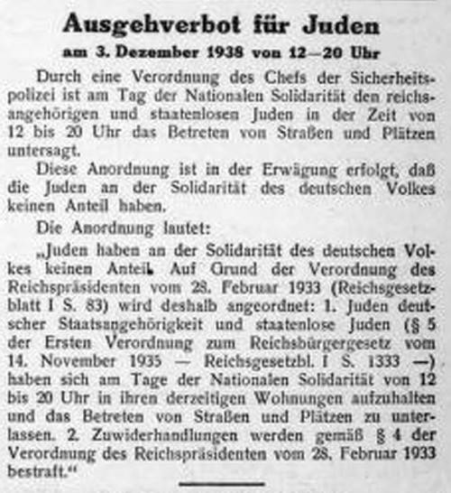Da die Juden an der deutschen Solidarität keinen Anteil haben, wird ihnen das Ausgehen am Tag der Nationalen Solidarität verboten.