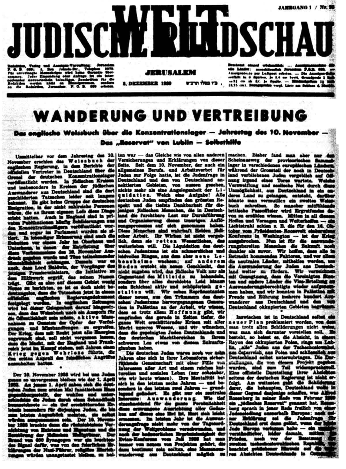 Ansonsten konzentrieren sich die die Zukunft der jüdischen Bevölkerung betreffenden Planungen und Aktivitäten des NS-Regimes auch im Dezember auf die neu eroberten polnischen Gebiete. So entwarf der für Lodz zuständige Regierungspräsident am 10. Dezember einen ersten Plan zur „Zusammenfassung sämtlicher Juden in einem geschlossenen Ghetto“. Wenn er eine „sofortige Evakuierung“ auch als unmöglich erachtete, ließ er am endgültigen Ziel keinerlei Zweifel: „Die Erstellung des Ghettos ist selbstverständlich nur eine Übergangsmaßnahme. Zu welchen Zeitpunkten und mit welchen Mitteln das Ghetto und damit die Stadt Lodz von Juden gesäubert wird, behalte ich mir vor. Endziel muß jedenfalls sein, daß wir diese Pestbeule restlos ausbrennen.“