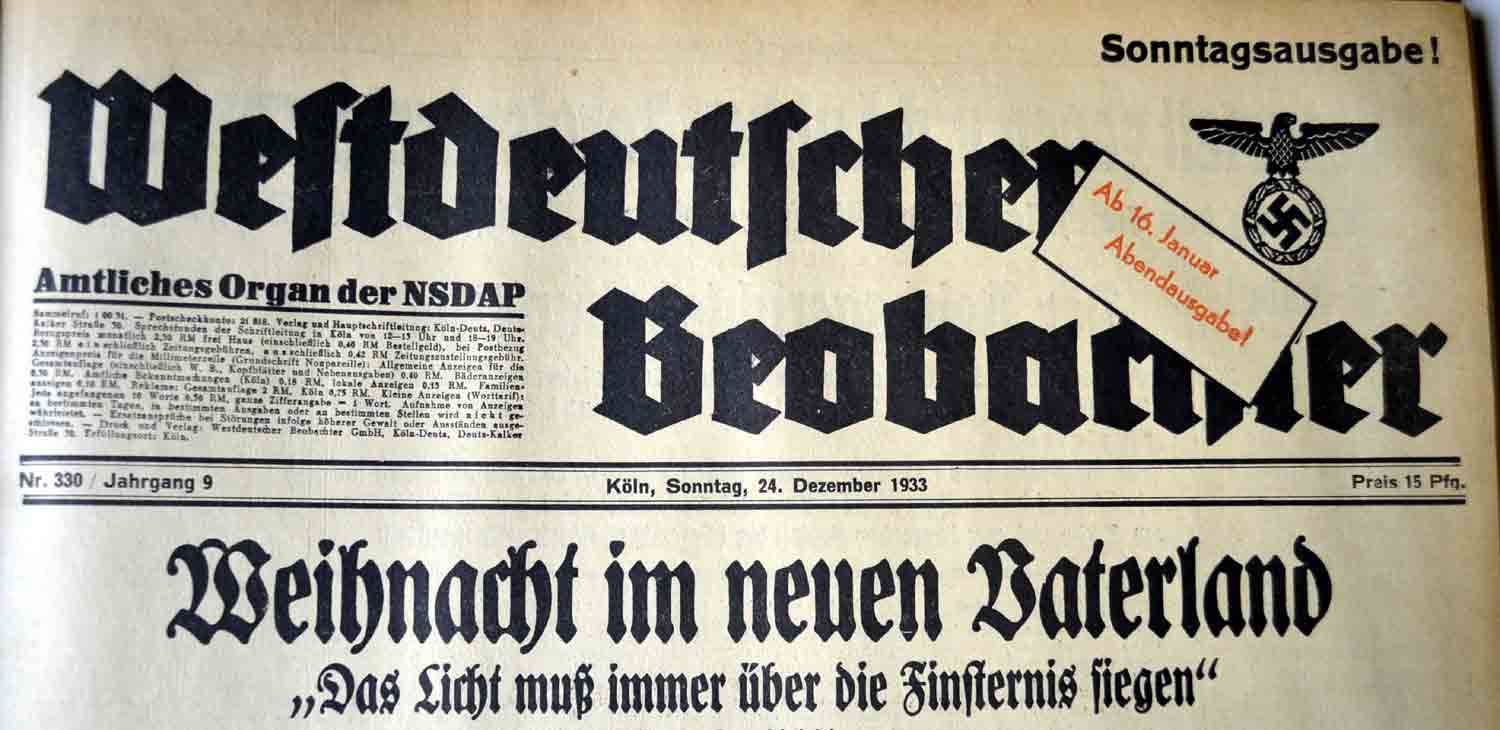 Das dürfte so unmittelbar vor Weihnachten aber eher wenige Menschen interessiert haben. An Heiligabend ließen sich jedenfalls erste Anzeichen einer konjunkturellen Verbesserung ablesen: Waren ein Jahr zuvor Tausende von Christbäumen unverkauft bei den Händlern liegen geblieben, wurden die Bestände 1933 nahezu komplett ausverkauft. Für den „Normalbürger“ schien langsam schrittweise wieder „Normalität“ einzukehren, für die man die – in aller Regel ja andere betreffende – Brutalität des NS-Regimes billigend in Kauf nahm.