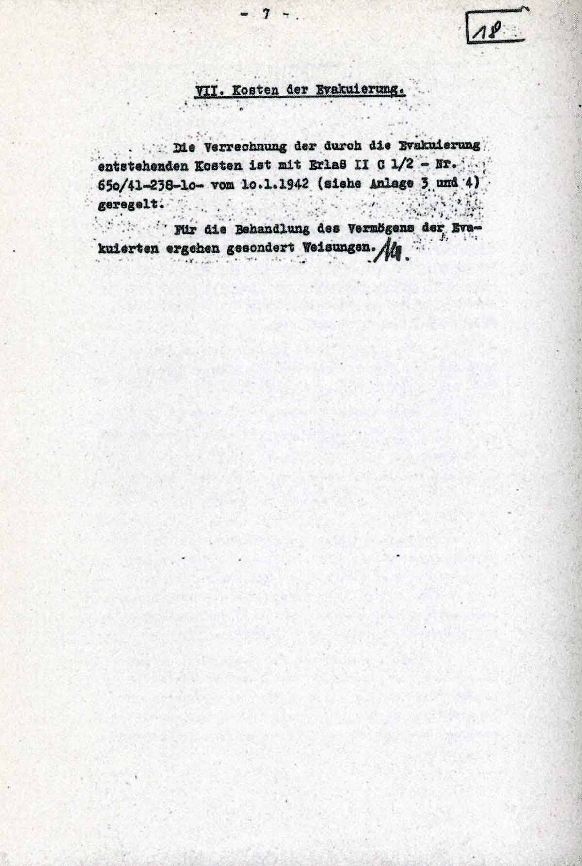 Die Verrechnung der durch die Evakuierung entstehenden Kosten ist mit Erlaß II C 1/2 - Nr. 650/41-238-10- vom 10.1.1942 (siehe Anlage 3 und 4) geregelt.