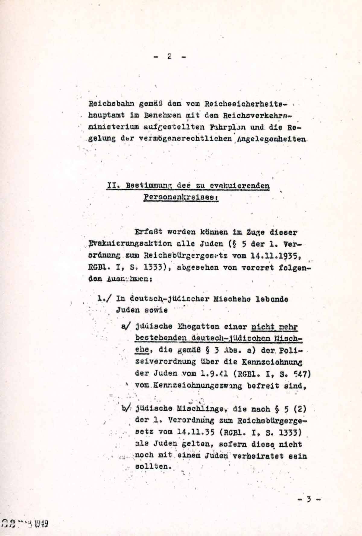 Erfaßt werden können im Zuge dieser Evakuierungsaktion alle Juden (§ 5 der 1. Verordnung zum Reichsbürgergesetz vom 14.11.1935, RGBl. I, S. 1333), abgesehen von vorerst folgenden Ausnahmen: