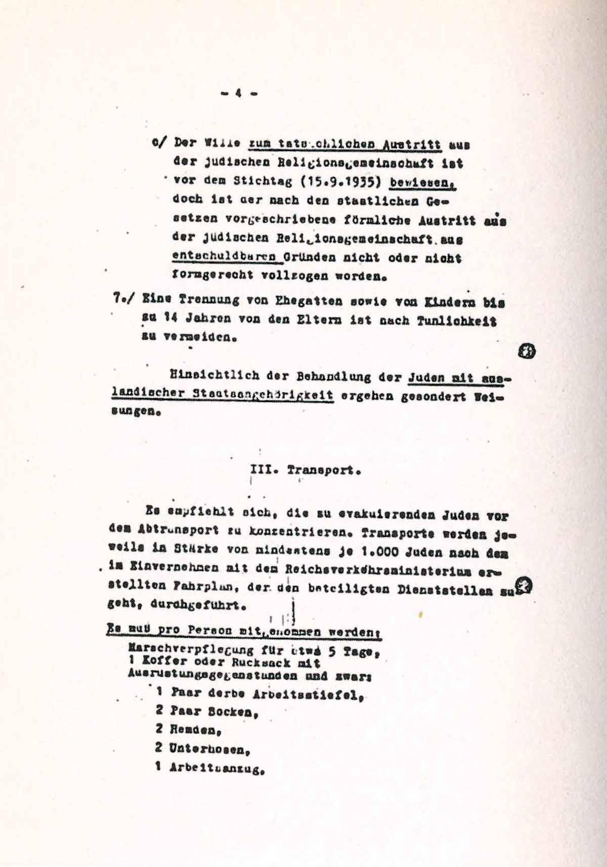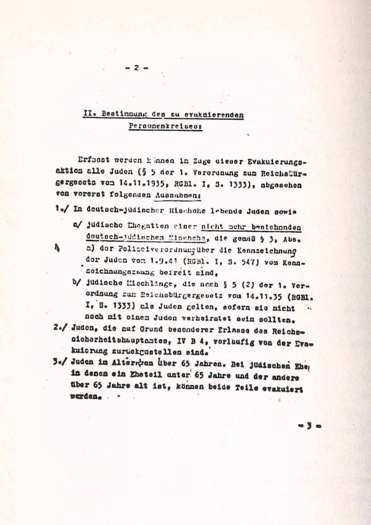 Erfasst werden können im Zuge dieser Evakuierungsaktion alle Juden (§ 5 der 1. Verordnung zum Reichsbürgergesetz vom 14.11.1935, RGBl. I, S. 1333), abgesehen von vorerst folgenden Ausnahmen: