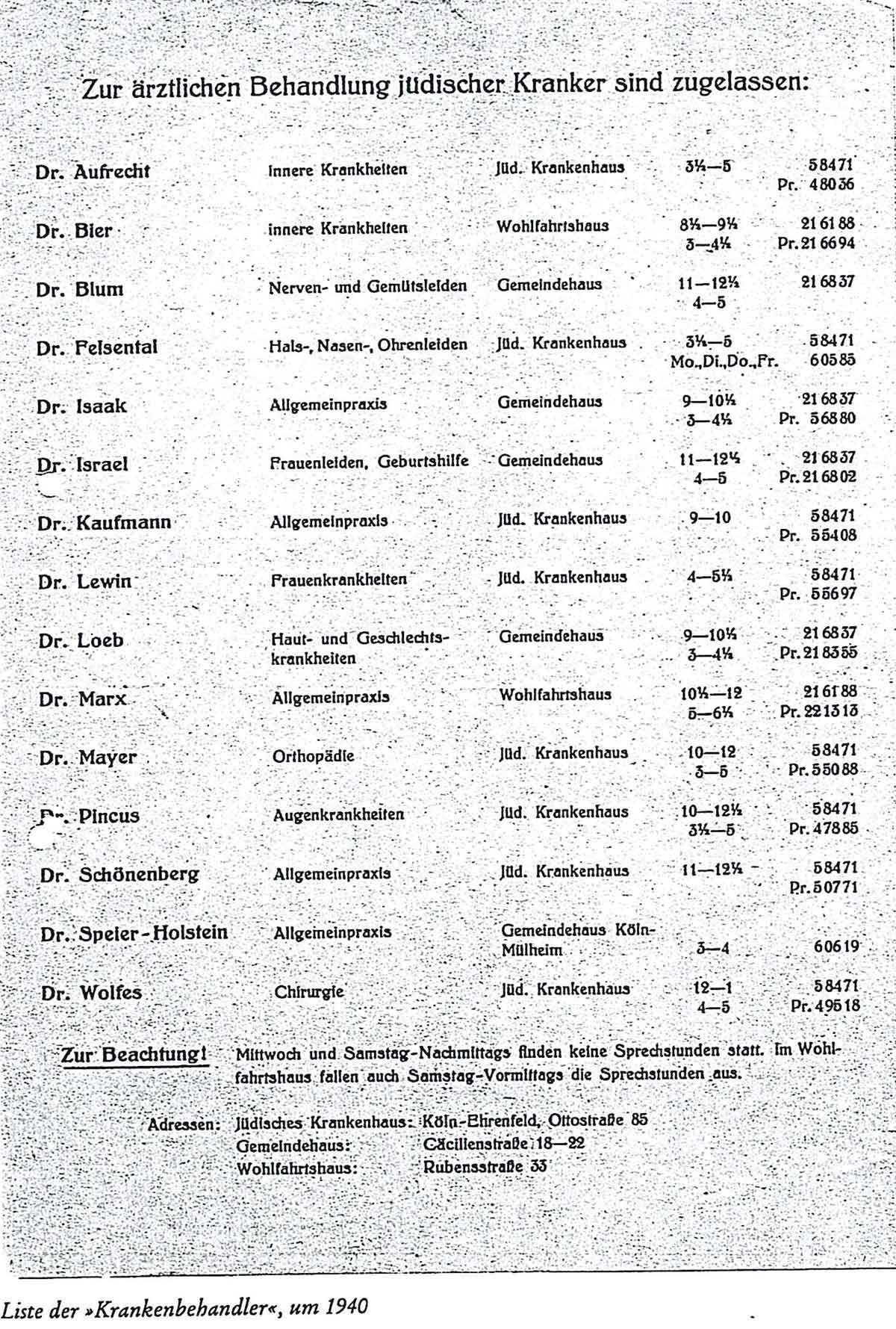 Aus der Zeit um 1940 ist folgende gedruckte Liste der zugelassenenen "Krankenbehandler" überliefert: