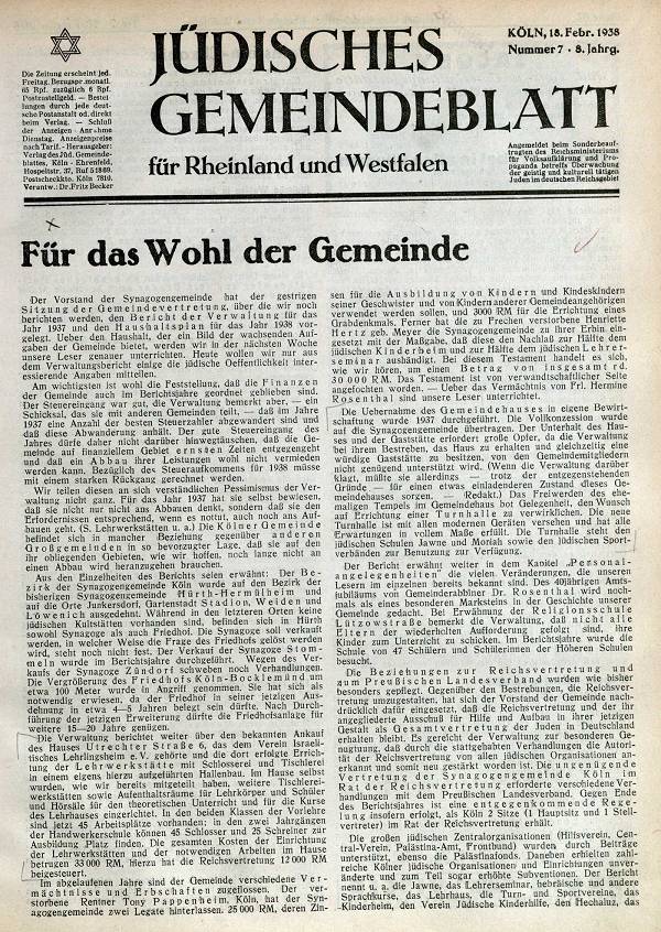 Der Februar 1938 brachte weitere Stationen auf dem Weg der finanziellen Benachteiligung und der Verdrängung vom Arbeitsmarkt und damit aus dem Wirtschaftsleben.