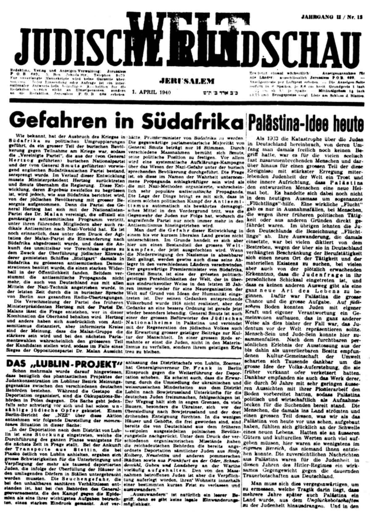 Auch mit Blick auf Warschau wurde am 8. April vom Leiter der dortigen „Abteilung Umsiedlung“ darauf gedrängt, dort schnellstmöglich ein Getto einzurichten. Das war dadurch notwendig geworden, weil der Plan, „den Lubliner Raum als Sammelbecken für die Juden vorzusehen“, zwischenzeitlich aufgegeben worden war.