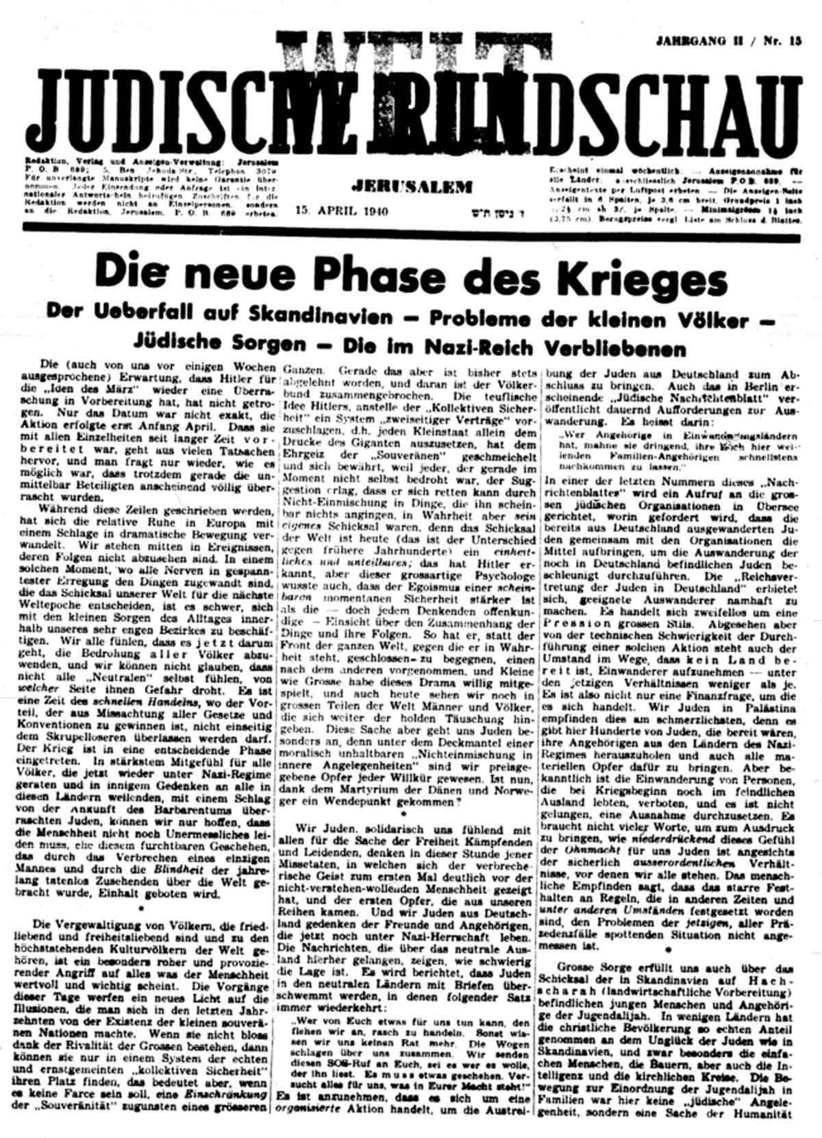 Der Krieg nahm – in den Augen vieler Deutscher wohl endlich – seinen Fortgang: Am 9. April begann – ohne vorherige Kriegserklärung - im Rahmen des Unternehmens „Weserübung“ die Besetzung der neutralen Länder Dänemark und Norwegen durch die Wehrmacht. An sechs Stellen der 1.500 km langen norwegischen Küsten gingen deutsche Truppen an Land, während Dänemark durch motorisierte Verbände innerhalb eines Tages überrollt wurde. Als fadenscheinige Begründung verlautbarte die Reichsregierung, die Invasion sei notwendig geworden, um beide Länder vor einem unmittelbar bevorstehenden Zugriff der Alliierten zu schützen. Die dänische Armee kapitulierte bereits einen Tag später, während Norwegen ein deutsches Ultimatum ablehnte und am 10. April die Mobilmachung anordnete. Doch trotz Unterstützung durch britische und französische Kräfte konnte der deutsche Vormarsch nicht aufgehalten werden. Letztendlich sollten diesem nach der Eroberung Polens bereits zweiten „Blitzkrieg“ etwa 1.300 Menschen zum Opfer fallen; weitere 2.300 galten als vermisst.