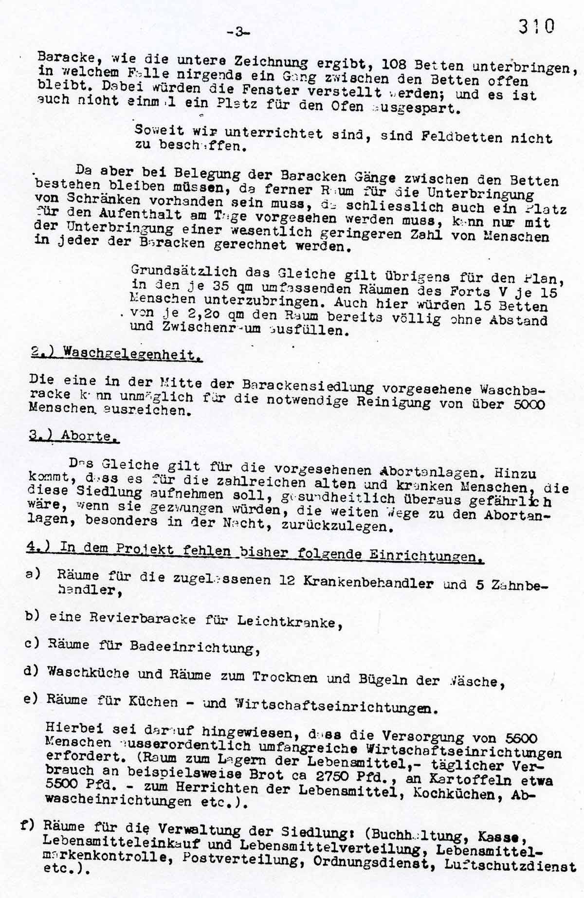 Das Gleiche gilt für die vorgesehenen Abortanlagen. Hinzu kommt, dass es für die zahlreichen alten und kranken Menschen, die diese Siedlung aufnehmen soll, gesundheitlich überaus gefährlich wäre, wenn sie gezwungen würden, die weiten Wege zu den Abortanlagen, besonders in der Nacht, zurückzulegen.