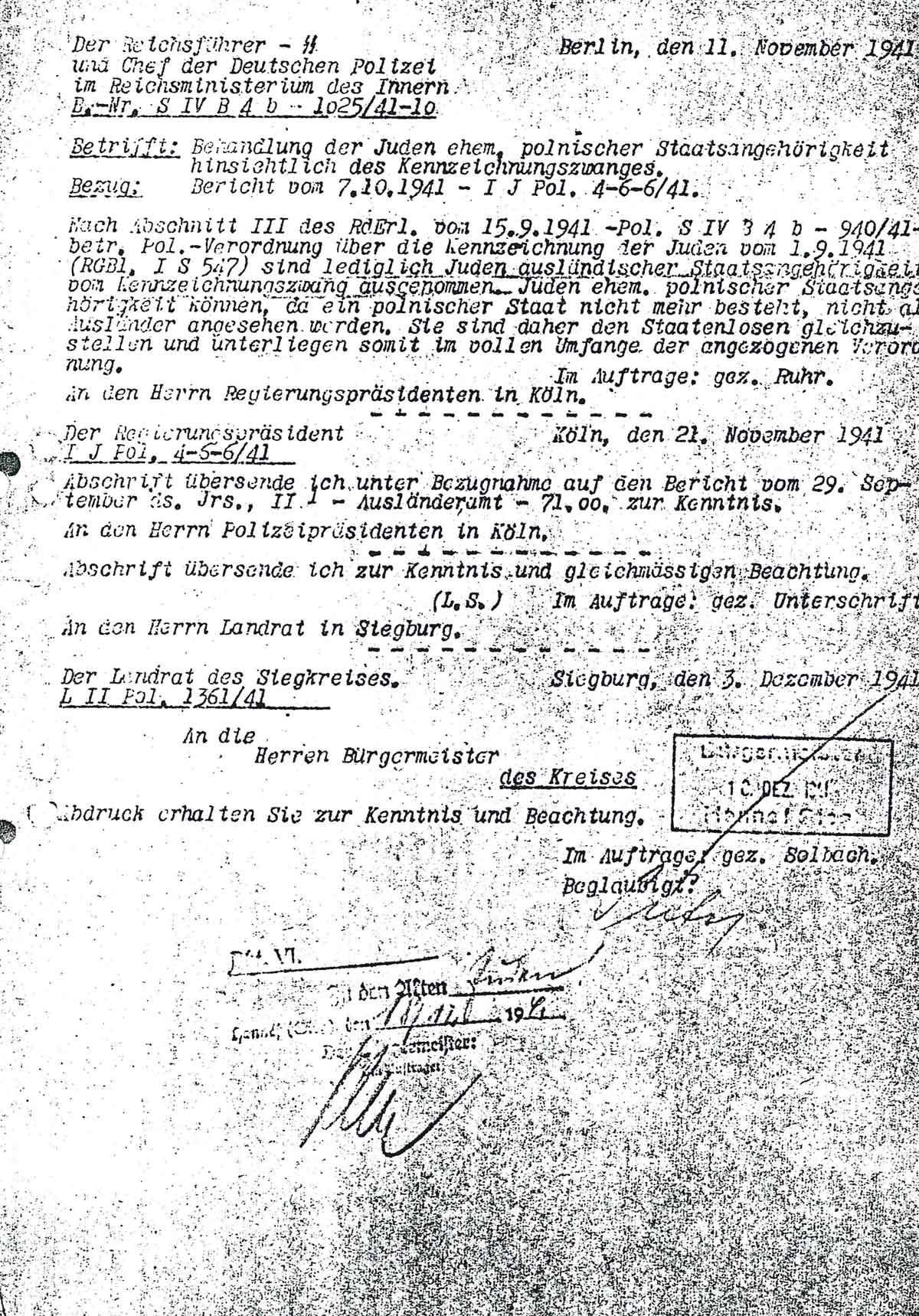 Am 11. November 1941 ordnet der Reichsführer-SS den Kennzeichnungszwang für Juden mit polnischer Staatsangehörigkeit an: