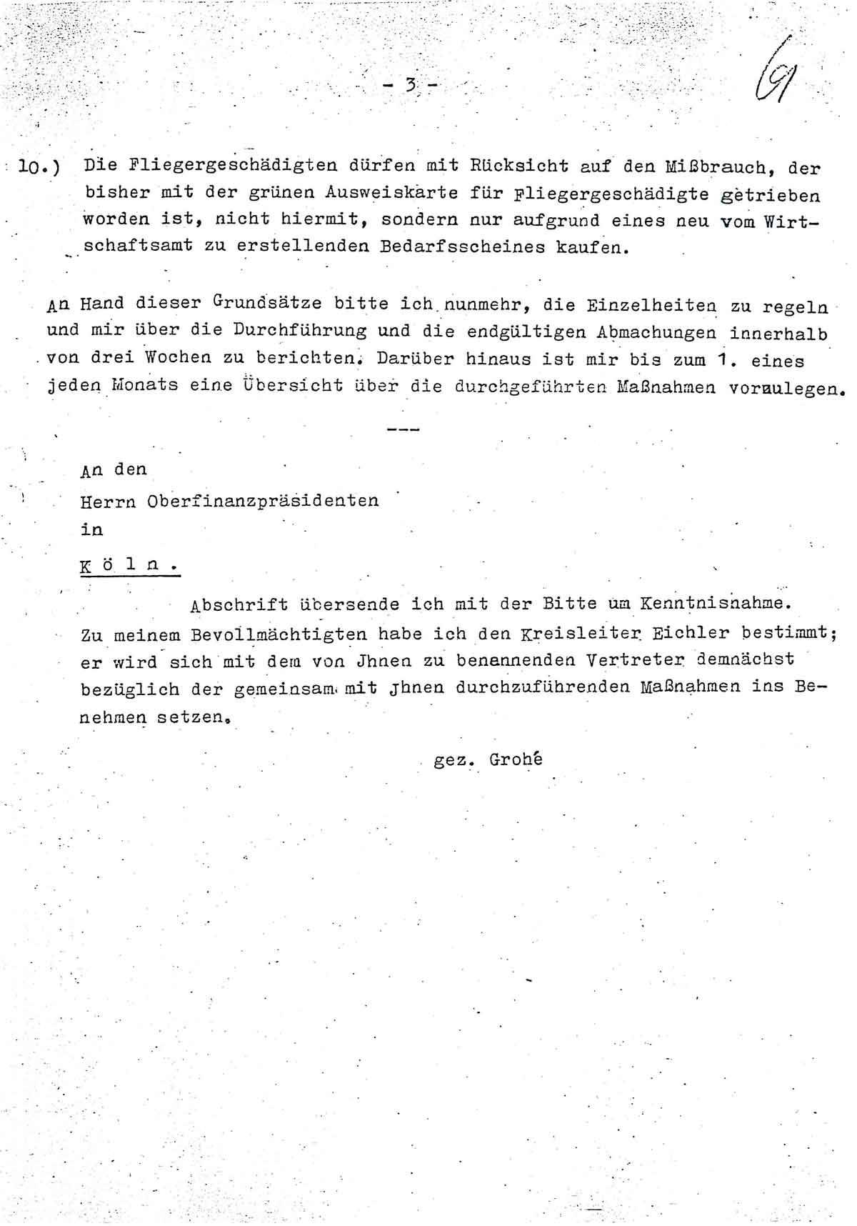 10.) Die Fliegergeschädigten dürfen mit Rücksicht auf den Mißbrauch, der bisher mit der grünen Ausweiskarte für Fliegergeschädigte getrieben worden ist, nicht hiermit, sondern nur aufgrund eines neu vom Wirtschaftsamt zu erstellenden Bedarfsscheines kaufen.