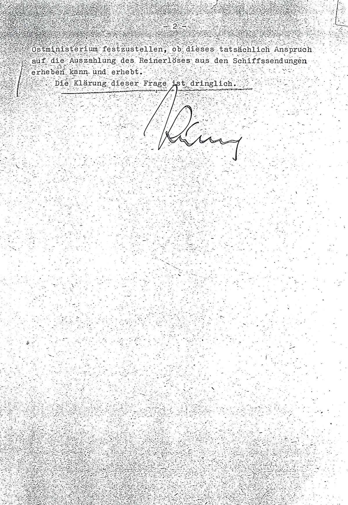 Ostministerium festzustellen, ob dieses tatsächlich Anspruch auf die Auszahlung des Reinerlöses aus den Schiffssendungen erheben kann und erhebt.