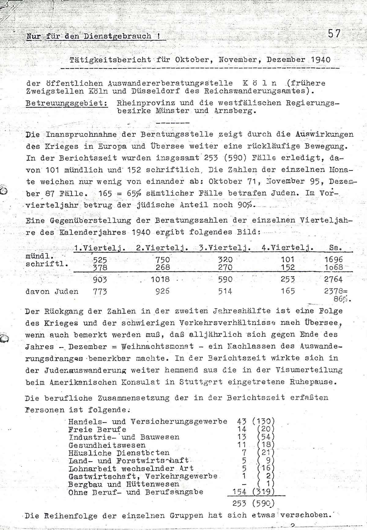 Vierteljahresbericht der Auswandererstelle Köln (Oktober bis Dezember 1940)