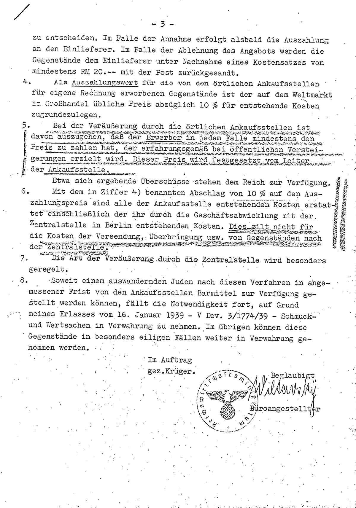 3. Gegenstände mit einem wahrscheinlichen Auszahlungswert von mehr als 300 RM sind von den Ankaufsstellen der Zentralstelle in Berlin zu überweisen. Die Industrie- und Handelskammer in Berlin wird den Ankaufsstellen die Anschrift dieser Zentralstelle demnächst mitteilen.