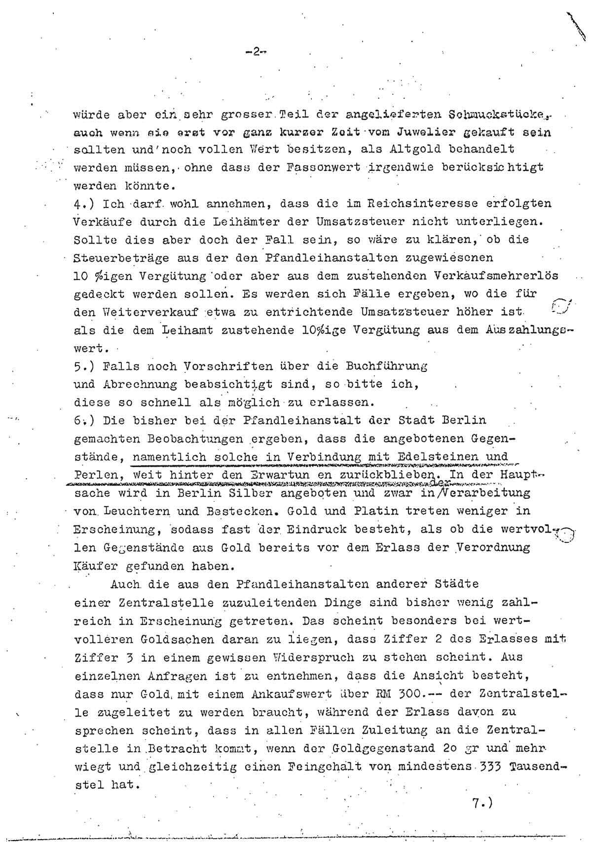 2). Ferner müsste geklärt werden, ob für Alt- und Bruchgold bei der Veräusserung stets der Höchstpreis von RM 3,50 je Gramm Feingold massgebend ist oder der deutsche Goldpreis für das Gramm Feingold im Grosshandel, d. h. RM 2,80 zu Grunde zu legen ist.