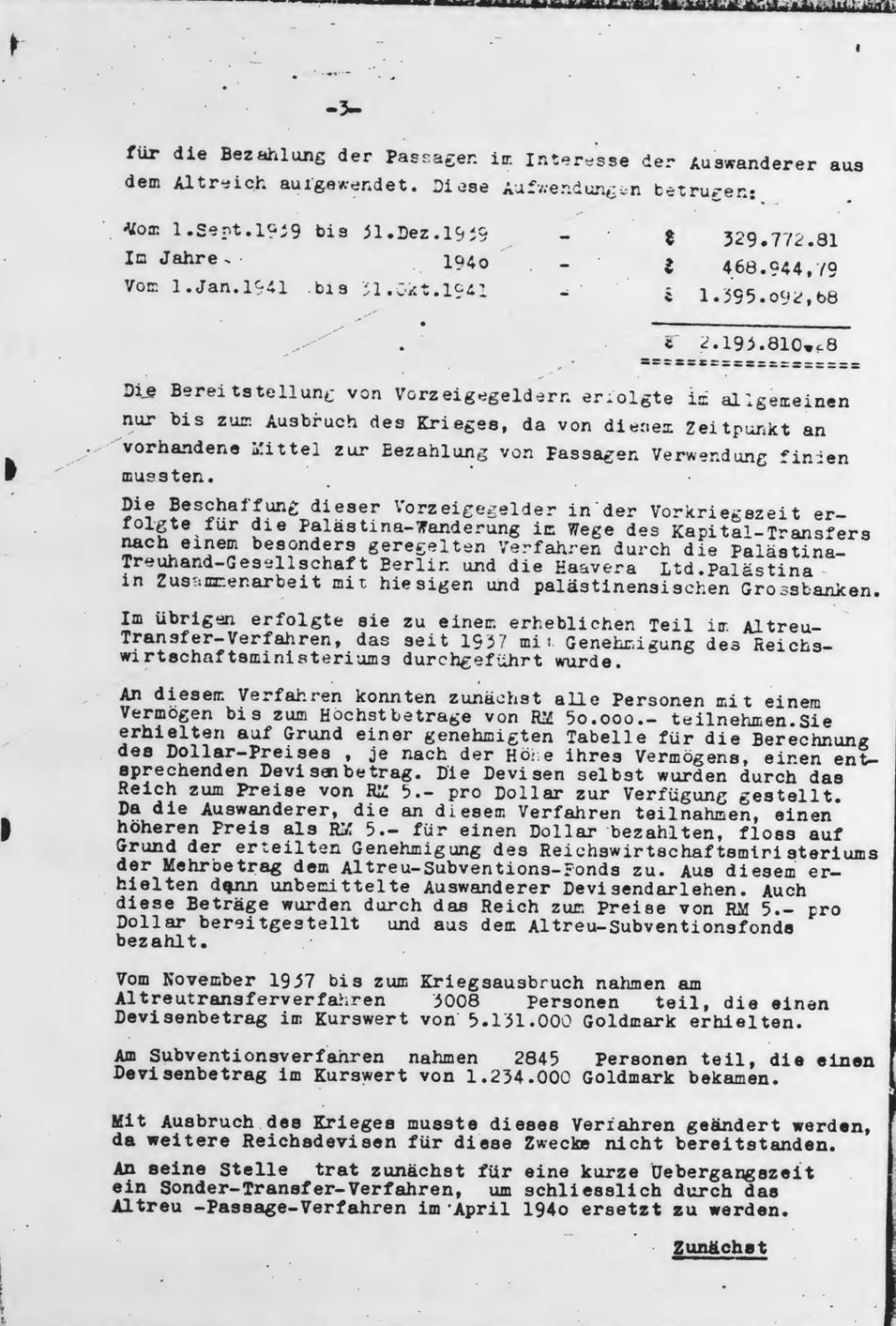 für die Bezahlung der Passagen im Interesse der Auswanderer aus dem Altreich aufgewendet. Diese Aufwendungen betrugen: