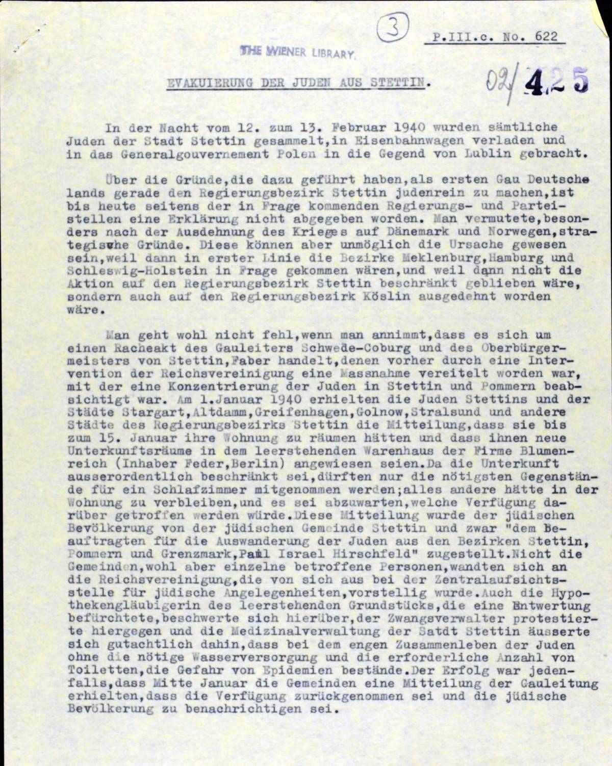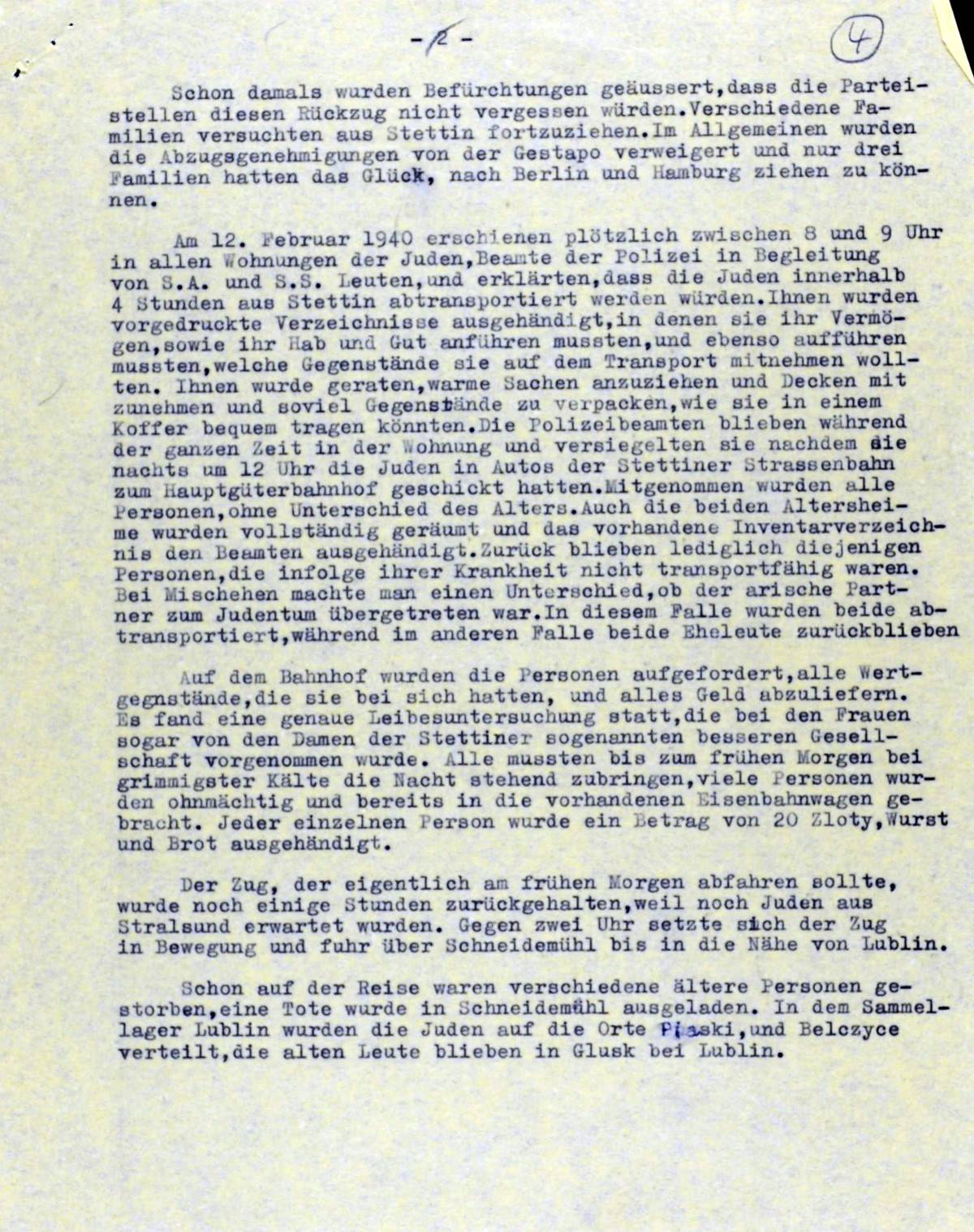 Das Vermögen der Juden und der Erlös aus ihren zur Versteigerung gebrachten Wohnungseinrichtungen ist auf ein Treuhandkonto eingezahlt, das von einem Rechtswahrer verwaltet wird. Die Reichsfluchtsteuer ist von ihnen beigetrieben worden und aus dem Konto bezahlt worden. Für sie selbst können hiervon keine Zahlungen geleistet werden, wohl aber an Angehörige im Altreich, denen gegenüber eine Unterhaltungspflicht besteht.
