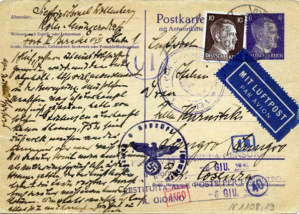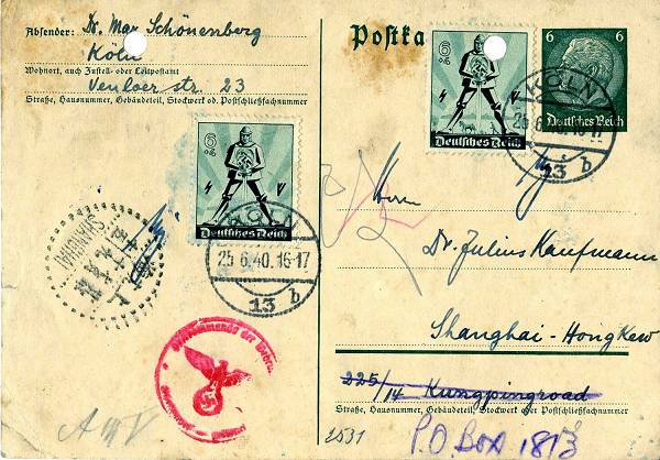 Es fällt ins Auge, dass sich in den erhaltenen Briefen aus Köln nur wenig Äußerungen zum Kriegsgeschehen finden – weder zu jenem an den Fronten noch zum seit Mai 1940 stetig eskalierenden Bombenkrieg in der zunehmend von Zerstörungen und Beeinträchtigungen betroffenen Stadt selbst. Das dürfte kaum als Desinteresse der jüdischen Bevölkerung an den Auswirkungen des Krieges und als völlige Konzentration auf die eigenen Lebensumstände gedeutet werden, denn gerade der Fortgang des Krieges war für die eigene Zukunft ja in mehrfacher Hinsicht von ausschlaggebender Bedeutung. Das auffällige Aussparen derartiger Themen, das weit über die entsprechende Zurückhaltung in „normalen“ Feldpostkorrespondenzen hinausging, dürfte wohl weitaus eher darauf zurückzuführen gewesen sein, dass nahezu alle ins Ausland adressierten Briefe aus jüdischen Kreisen einer strengen Zensur unterlagen. Daher war die Befürchtung vor Beanstandungen berechtigterweise groß, denn gerade Äußerungen über den Krieg konnten leicht als Spionage und/oder „Gräuelpropaganda“ ausgelegt und entsprechend sanktioniert werden. Das aber hätte die ohnehin langwierige und störanfällige Kommunikation mit Verwandten in Emigrationsländern und damit die eigene Auswanderung massiv gefährden können.[3]